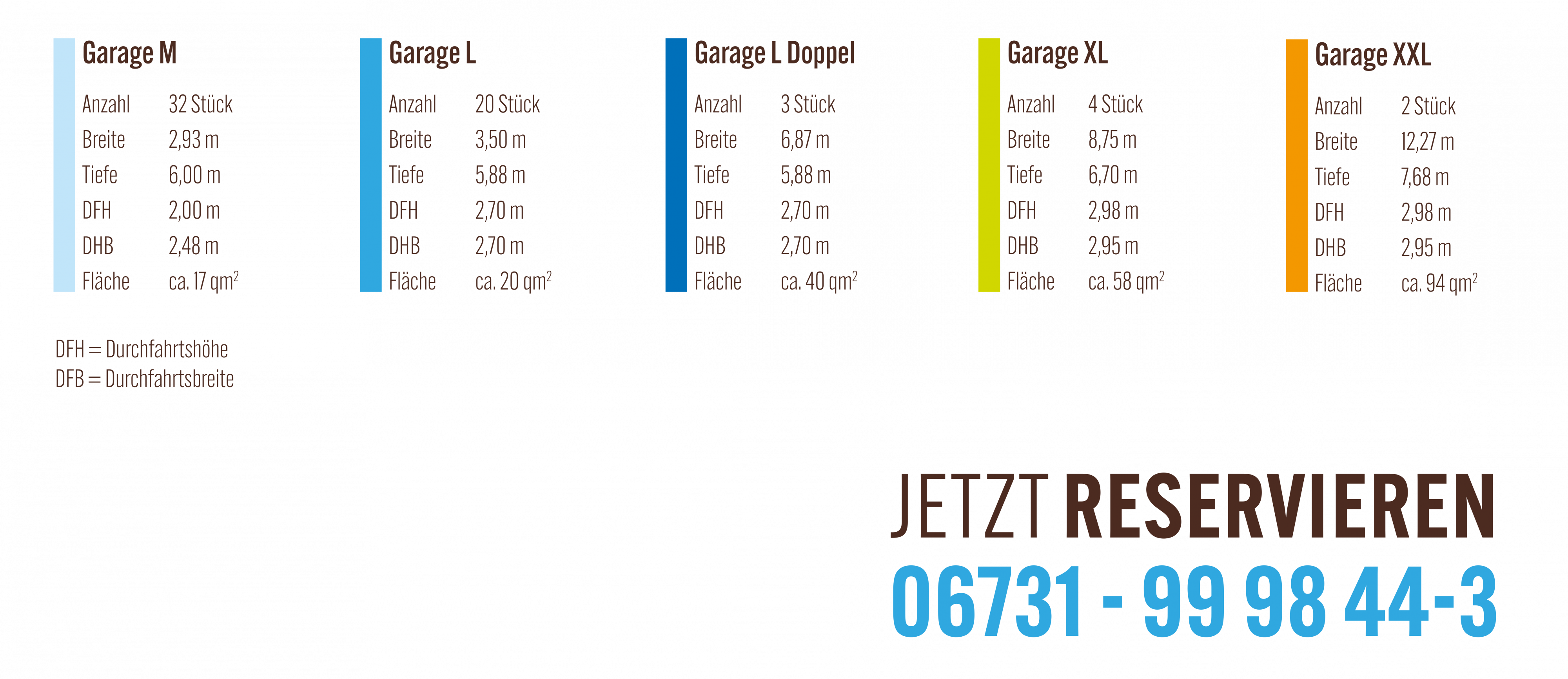 - Insgesamt 62 Garagen in verschiedenen Größen von 17qm bis 94qm, Größe M-XXL